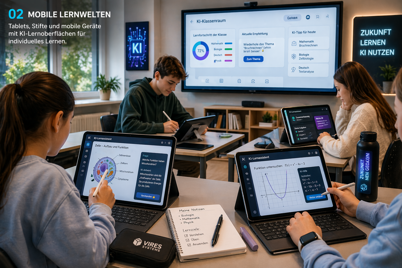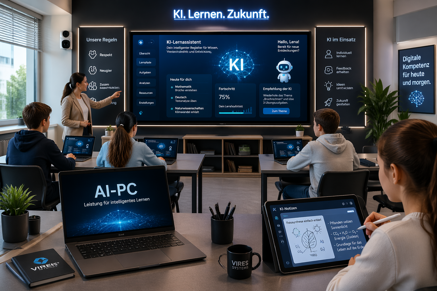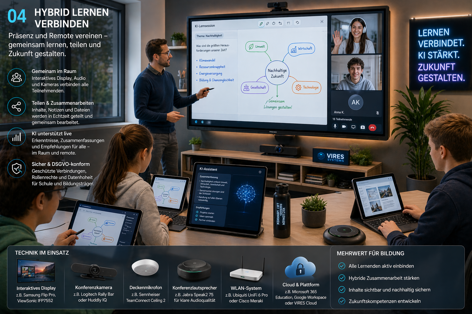 VIRES liefert die KI-Logiken, Gesprächsführung und Struktur. Für die reale Umsetzung braucht es daneben einen Technik-Stack für Unterricht, Lernen zu Hause, Ausbildung und Berufsorientierung.