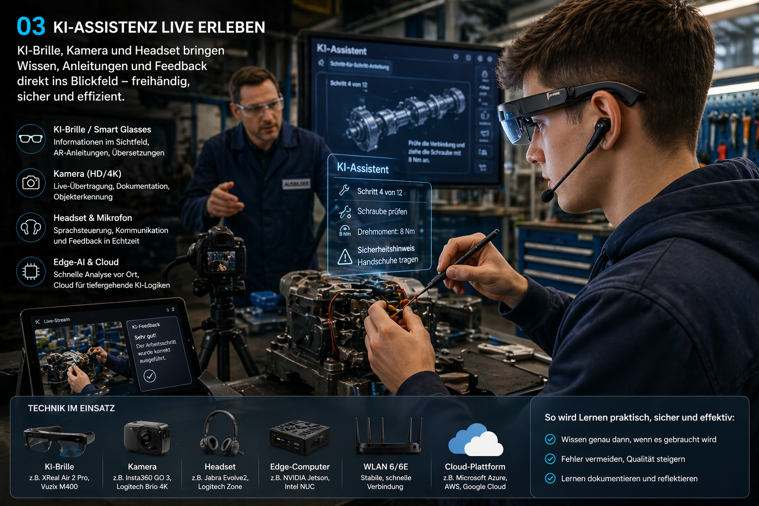 Für Sprache, Hybrid-Situationen, Dokumentation, Praxisbeobachtung und freihändige Assistenz in bestimmten Szenarien.